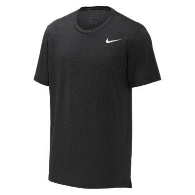 We're proud to offer this direct-from-retail Nike style, while supplies last. This isn't your ordinary tee. This elevated, sophisticated heathered top is engineered to keep you cool with sweat-wicking mesh fabric. Its functional design includes side seam vents that help you move freely in the gym or on the field. Rolled-forward shoulder seams allow full range of motion. A drop tail hem gives extra coverage. A contrast heat transfer Swoosh design trademark is on the left chest. Made of 4.5-ounce, 76/12/12 recycled polyester/rayon/cotton Dri-FIT fabric.