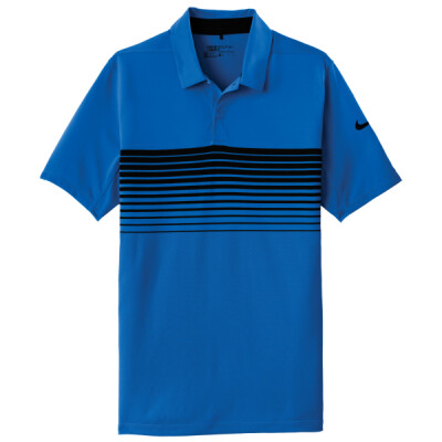 With contrasting printed stripes, this lightweight polo offers exceptional comfort thanks to Dri-FIT moisture management technology and underarm gussets. Design details include a self-fabric collar, two-button placket with dyed-to-match buttons and open hem sleeves. A contrast heat transfer Swoosh design trademark is on the left sleeve. Made of 4.3-ounce, 100% polyester Dri-FIT fabric.