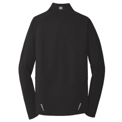 - Drop tail hem with reflective stacked O heat transfers at lower back panels