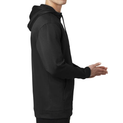 Nike has elevated the classic hoodie by improving this year-round essential with incredibly warm Therma-FIT fabric which breathes and manages moisture. The design includes a three-panel hood with dyed-to-match drawcords and zipper, front pouch pockets and open cuffs. The contrast heat transfer Swoosh design trademark is on the left sleeve. Made of 7-ounce, 100% polyester Therma-FIT fabric.