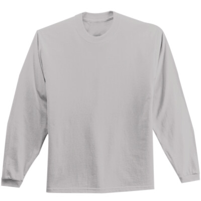 100% preshrunk ComfortSoft® cotton; Double-needle coverseamed neck; Taped shoulder-to-shoulder with ribbed knit cuffs; Tag-free neck label; Ash is 99% cotton, 1% polyester; Light Steel is 90% cotton, 10% polyester;