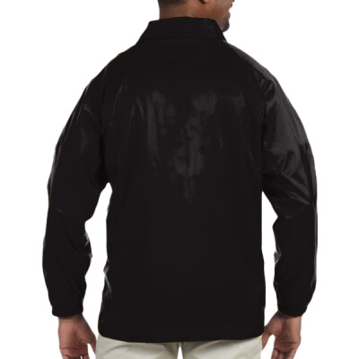 100% nylon taffeta; Wind- and water-resistant; Front welt pockets; Raglan sleeves with full elastic openings; Snap center front opening and open-bottom hem finish; InconspicuZip™ on inside for easy embroidery access; Heather Grey jersey lining (Sunray Yellow lined in White);