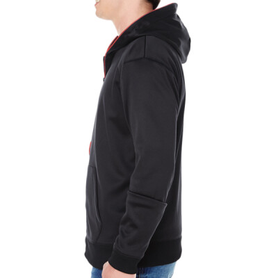 6.5 oz.; 100% Polyester; EL (Electroluminescent Lighting) lit piping on zipper placket and hood; Three light-up settings; Batteries not included; Set-in sleeves and pouch pocket;