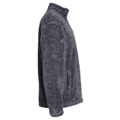 7.5 oz., 100% polyester multicolored shag; Unconcealed nylon zipper; Stand-up self-collar; Sideseam welt pockets; Single needle stitched throughout; Tear away label;