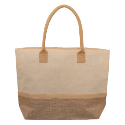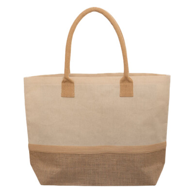 - Large open tote bag made of 8 oz. laminated Cotton Canvas and laminated Jute